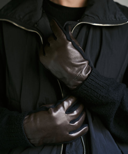 <MEN>【タッチパネル対応】羊革×マイクロボア リブ付き手袋(KHM-1035)