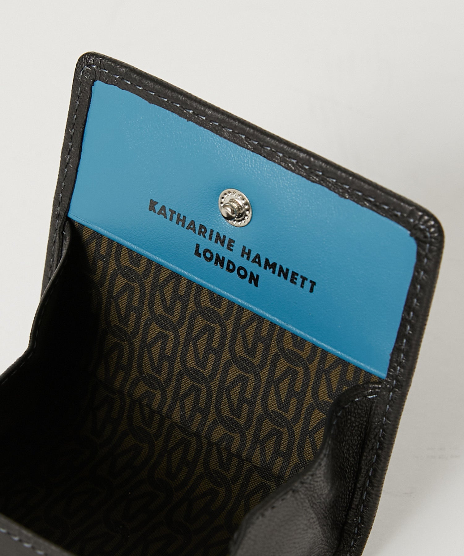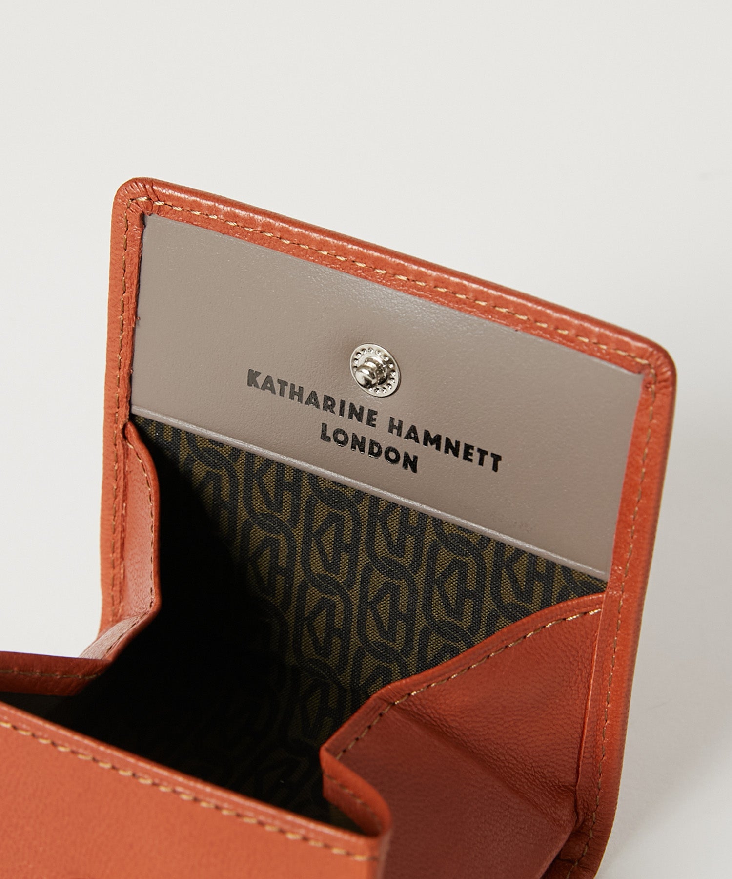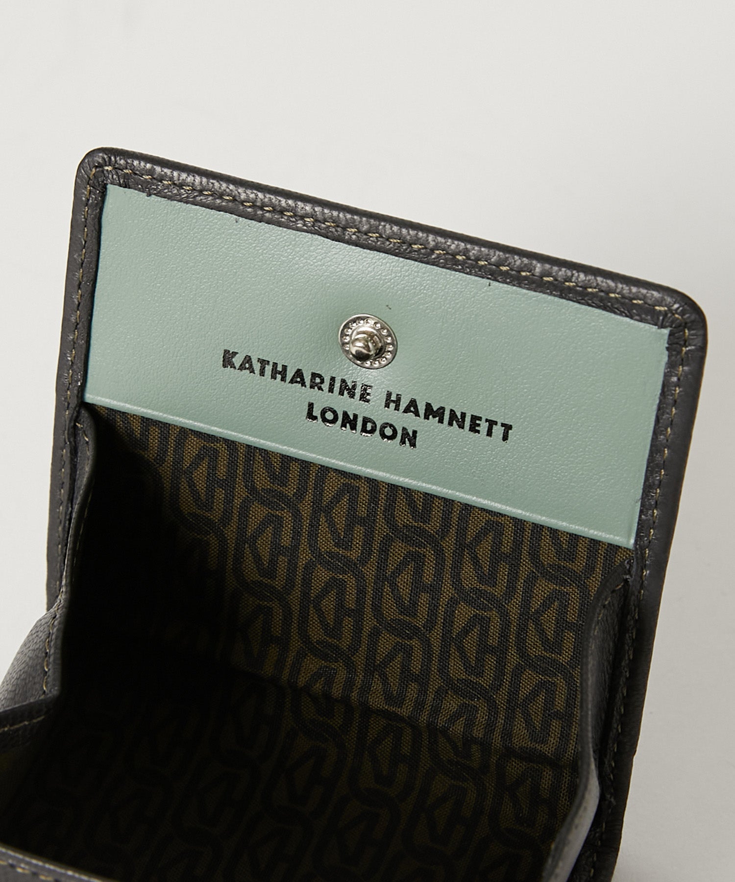 ボックス型の構造により、スナップボタンを開くと中身が一目で確認でき、小銭の出し入れもスムーズ。