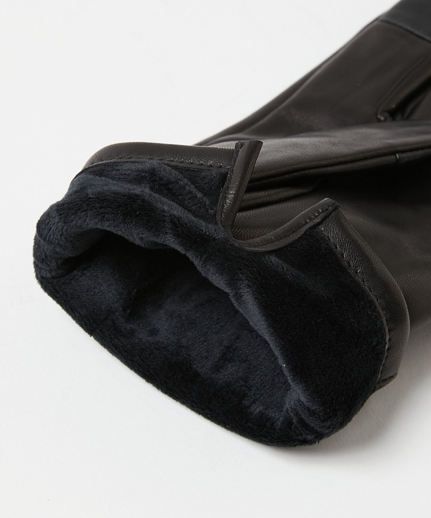 手首の裏側にはブランドロゴの素押しがさりげなく刻まれています。裏地はマイクロボアの仕様のため非常に暖かいです。