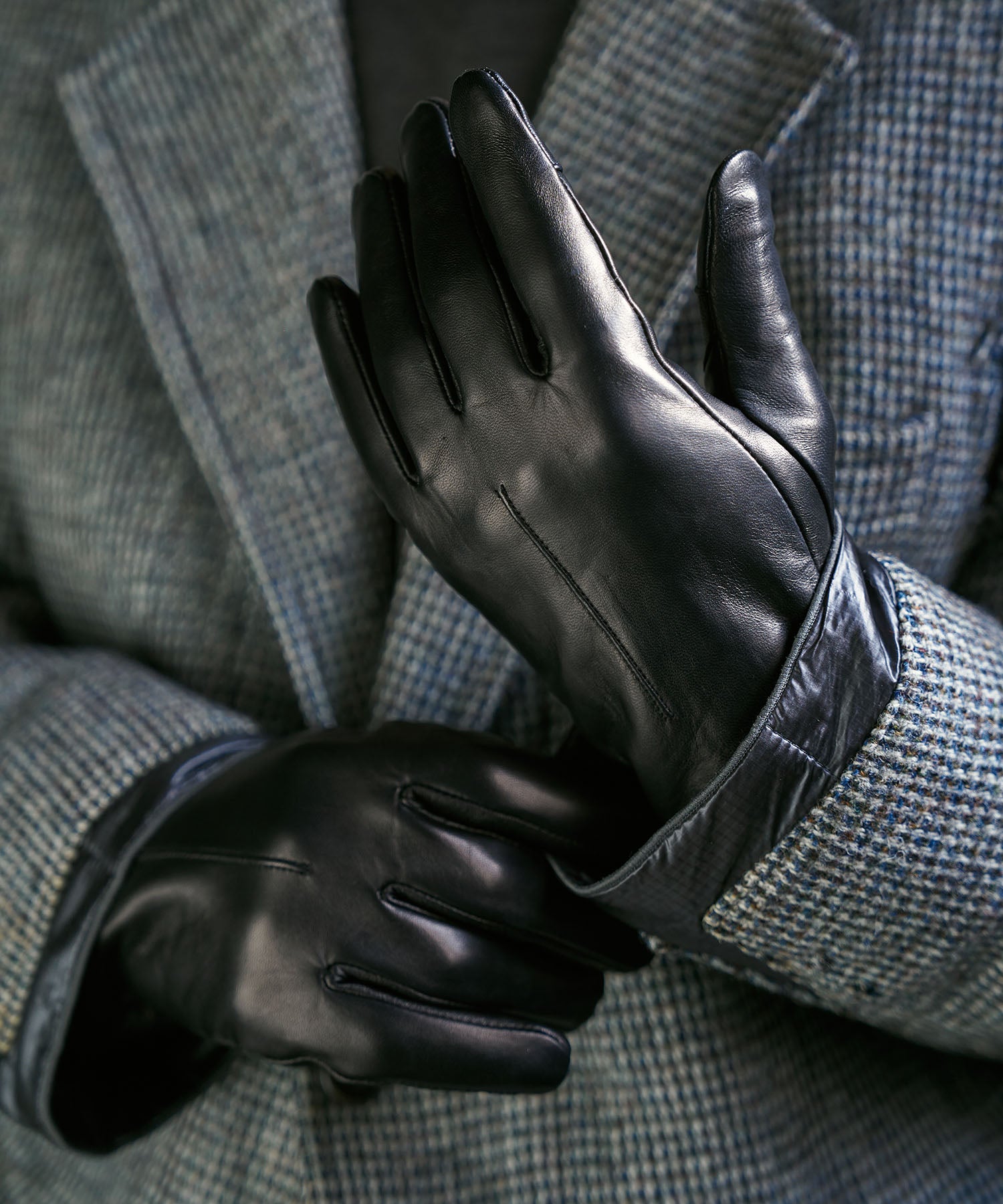 柔らかく肌に馴染む羊革を採用した男性用の手袋です。手の甲に一本のステッチが入り、シリーズの中でも最もシンプルかつクラシックなアテイムです。