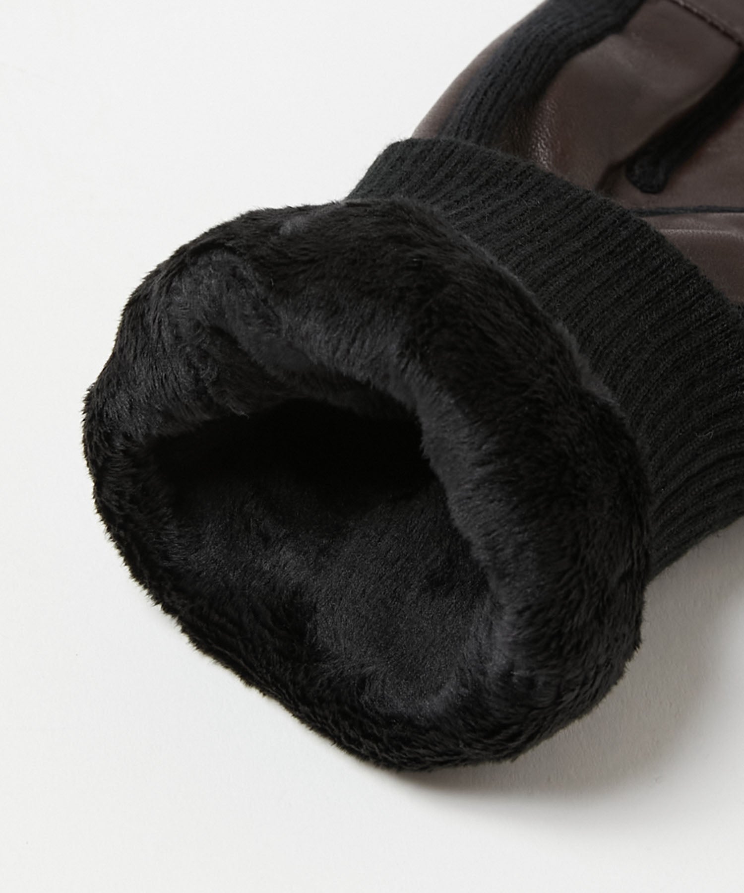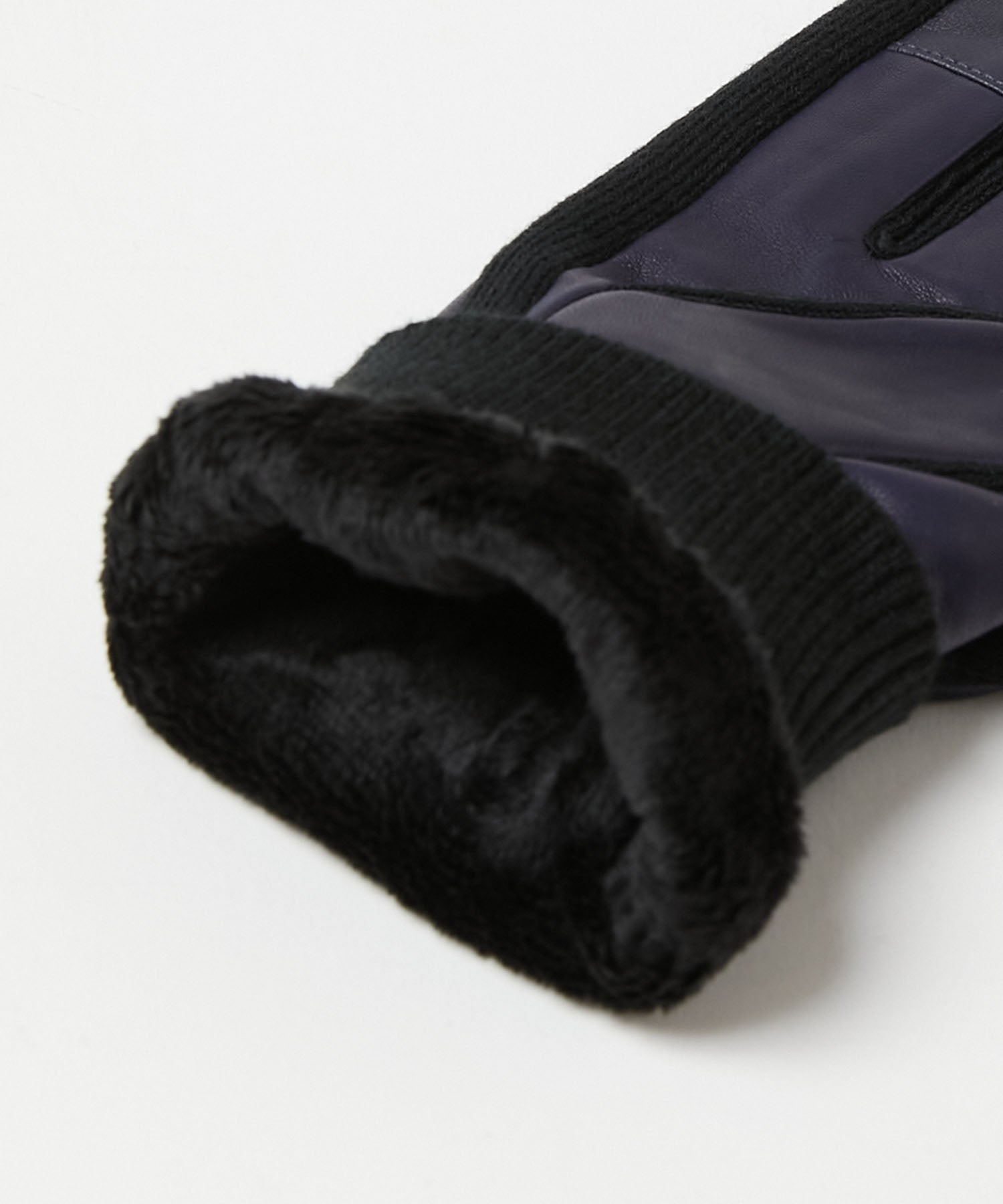 <MEN>【タッチパネル対応】羊革×マイクロボア リブ付き手袋(KHM-1035)