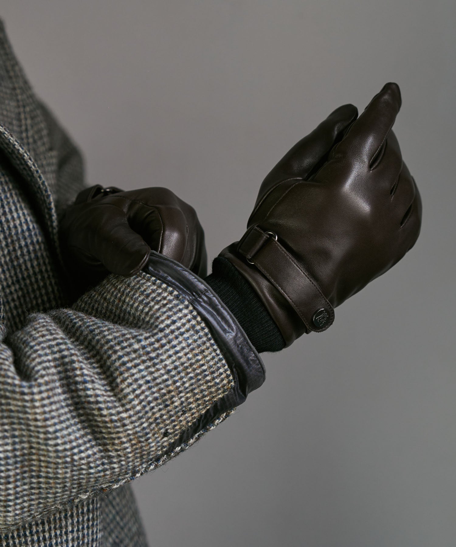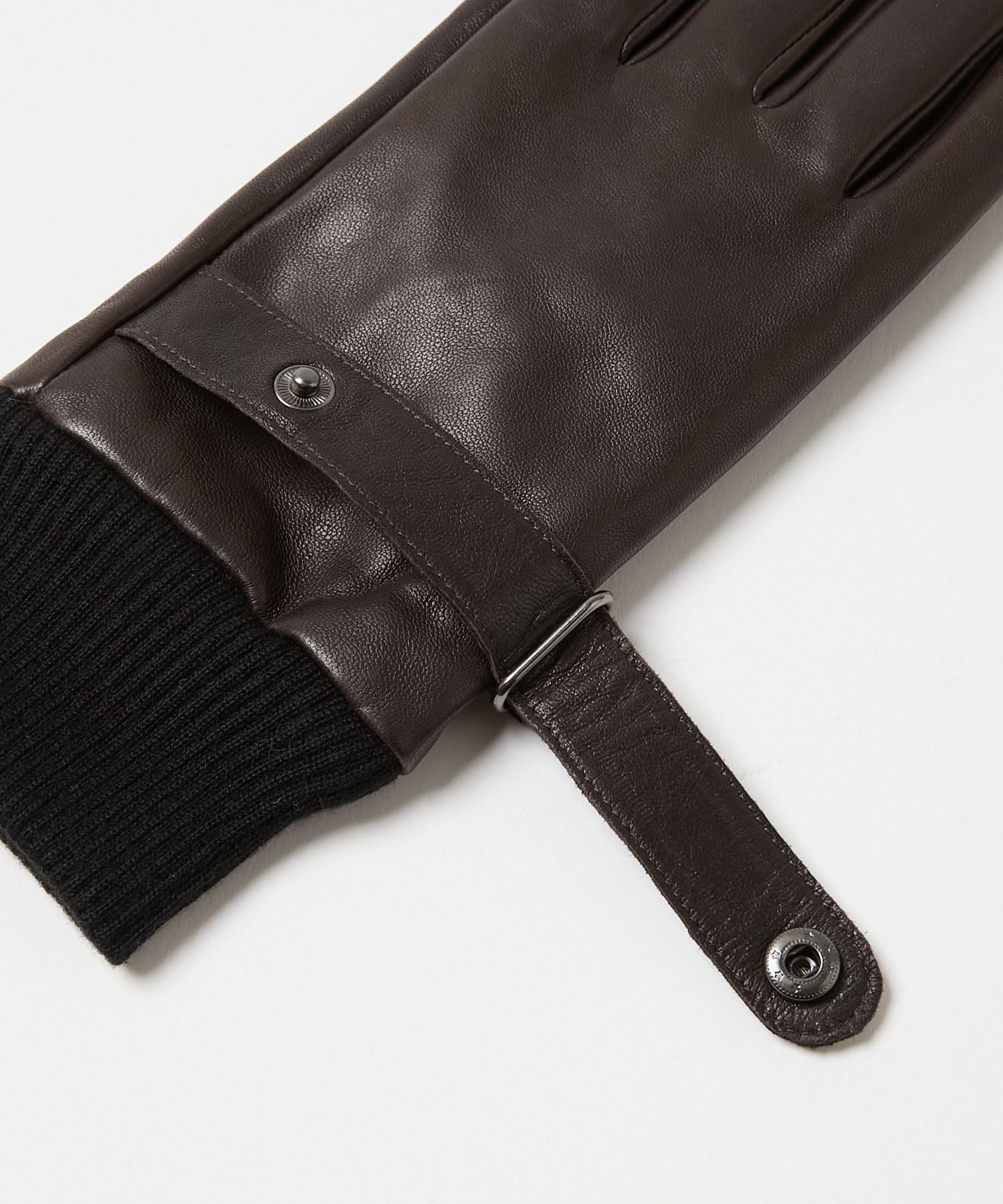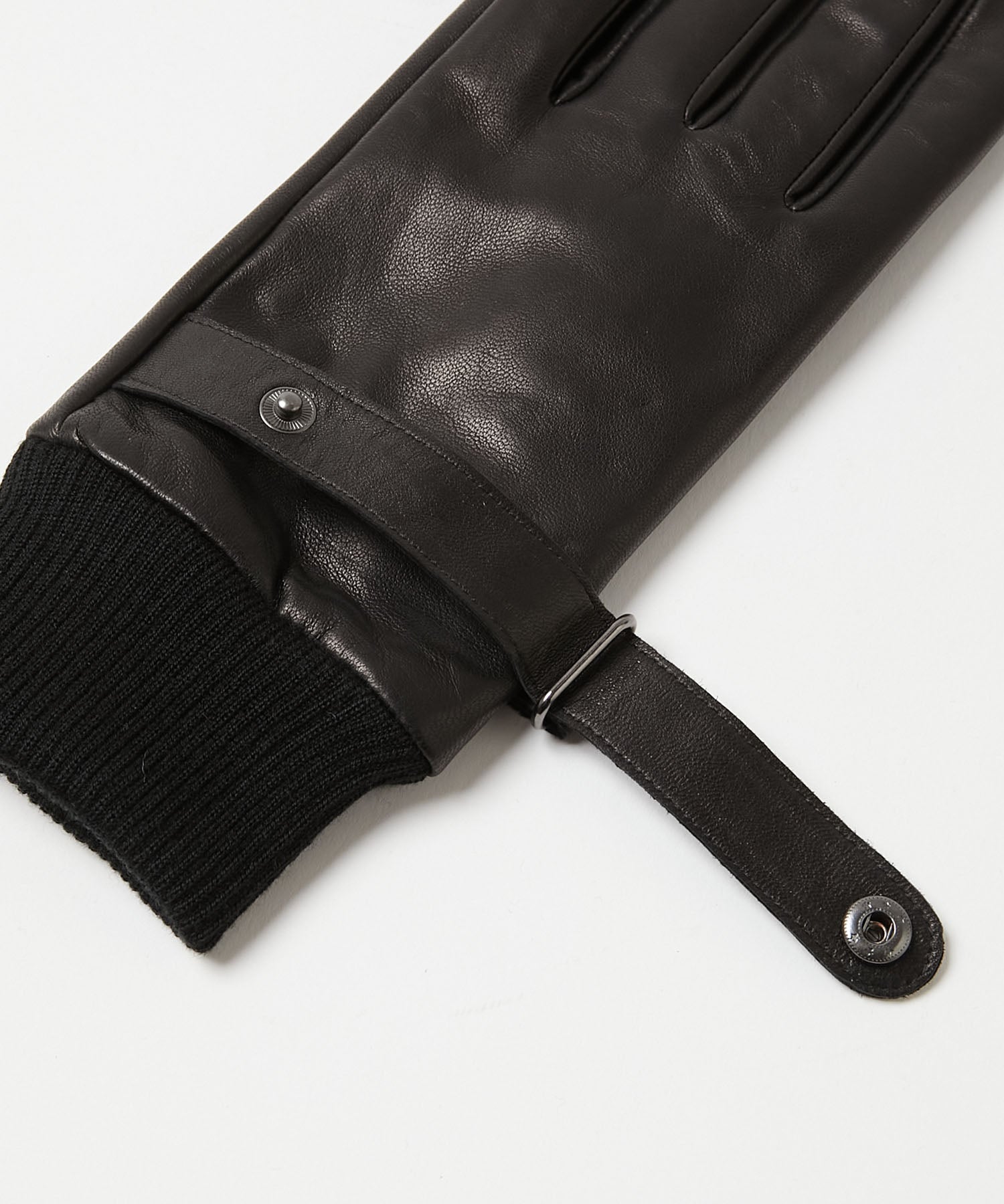 柔らかく肌に馴染む羊革を採用した男性用の手袋です。ベルトがアクセントとなっており、スナップボタンにはロゴがさりげなく配置されています。