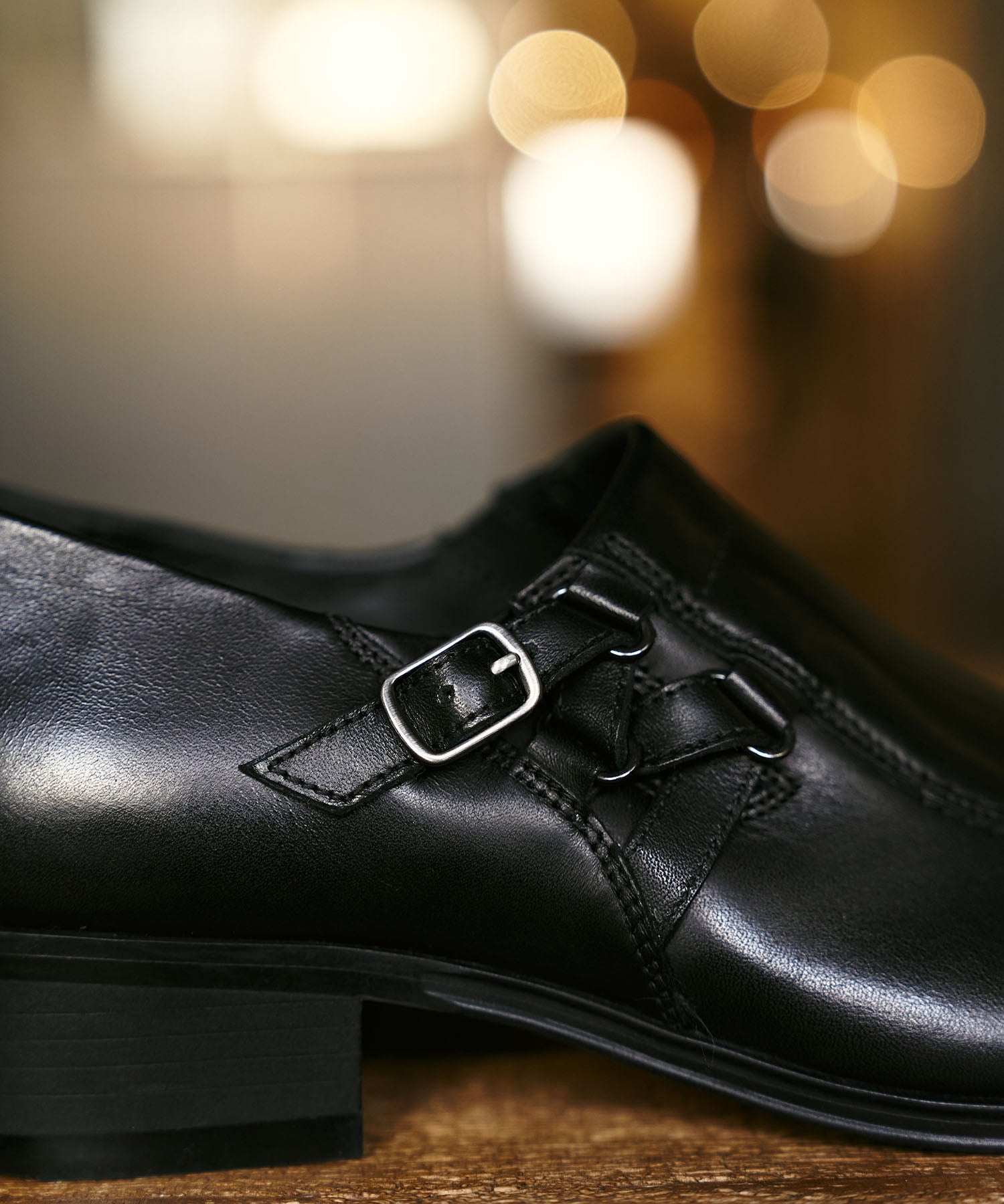 ベルト付きの端正なデザインと軽快な履き心地を両立した一足。