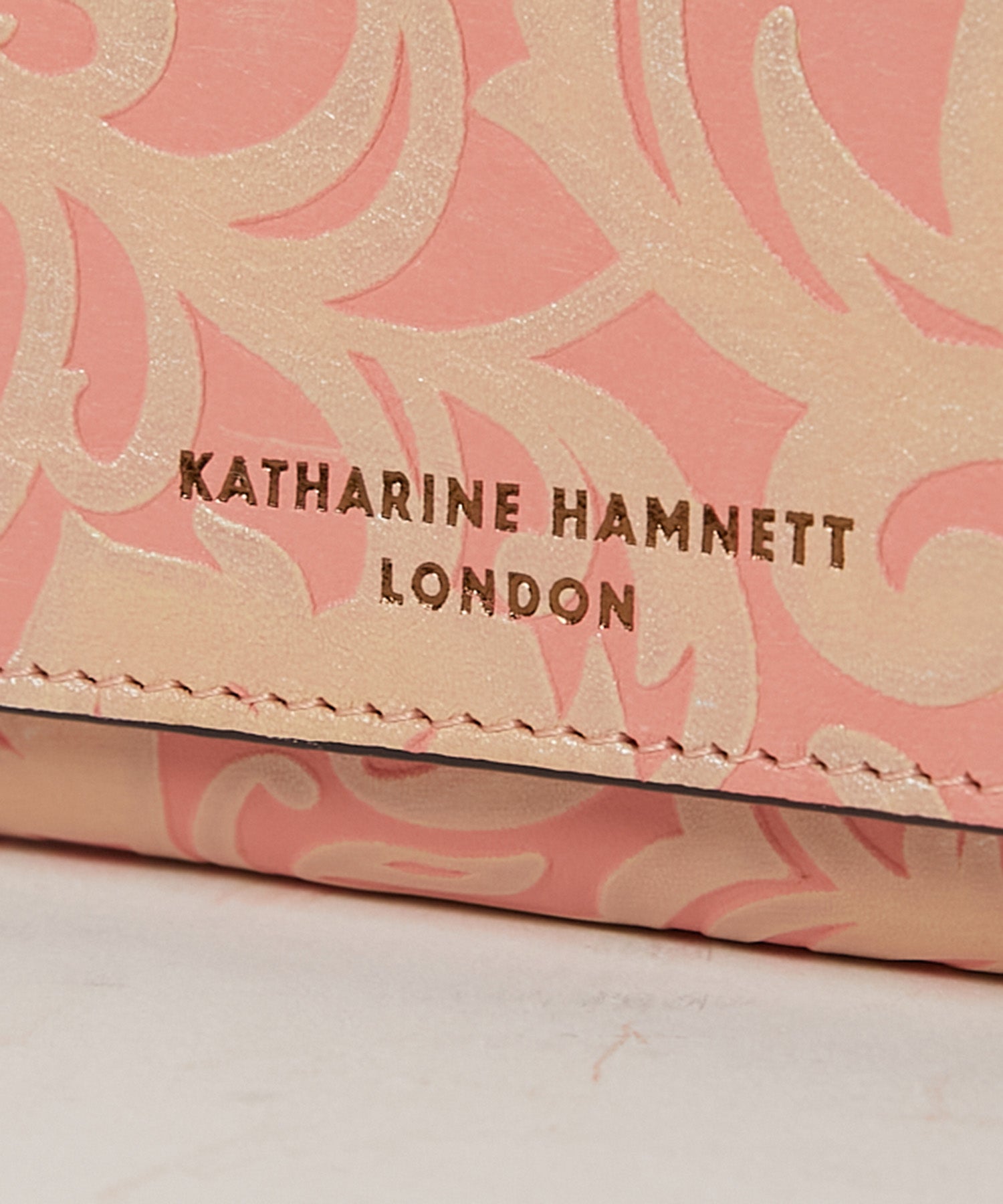パープルやピンクなどのペールトーンをベースに、型押しの革でレースのように浮かび上がる撫子の花模様を表現しています。革の表面にゴールドのパールを染め、それを拭き取ることにより、ほんのりゴールドが輝いてゴージャス感がプラスされています。エレガントで優しさのあるシリーズです。