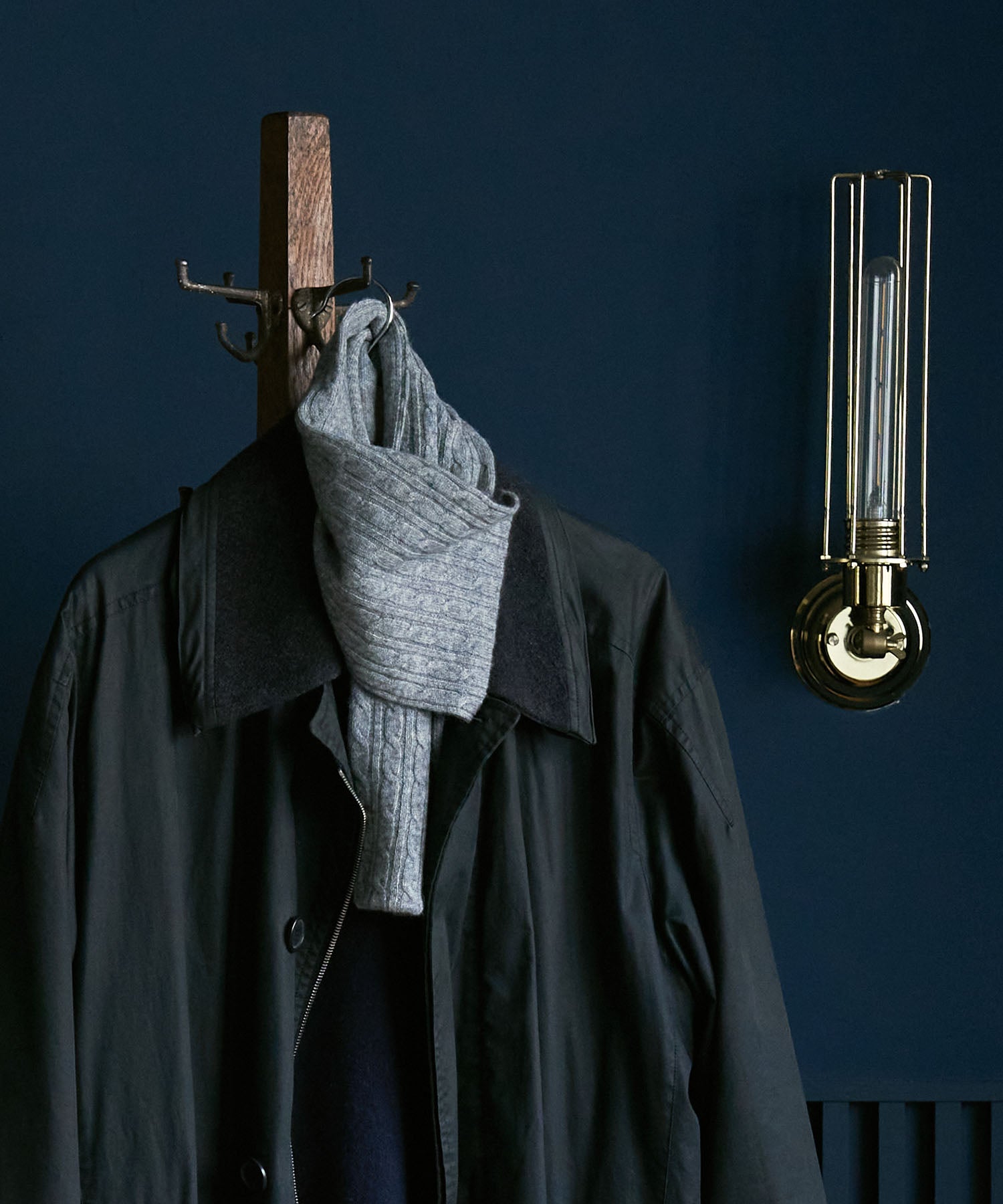 カシミヤ混のケーブル編みは上品でスタイリッシュな印象で、カジュアルなコーディネートにはもちろん、スーツやセットアップなどドレスアップ時にも合わせやすいです。